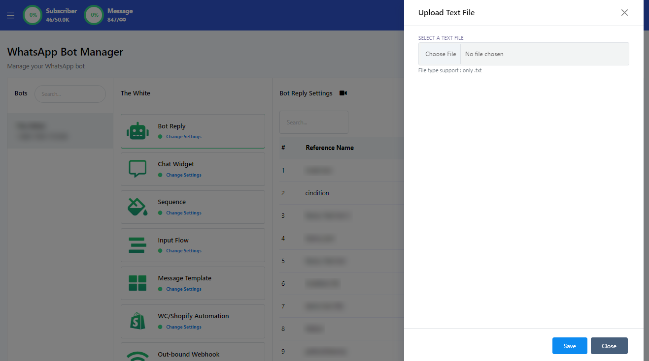 3. Upload a bot.txt file using the provided upload bar.