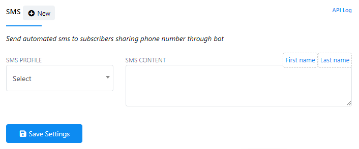 1. Click the `New` button next to the SMS section.